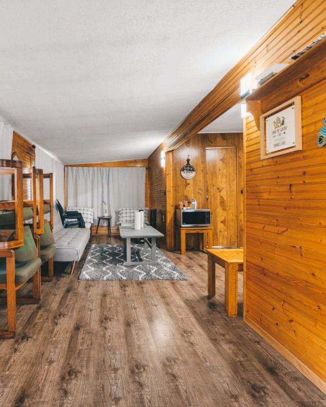 swimming pool, cabins, bunkies, and trailer rentals, all equipped with BBQ stations. We